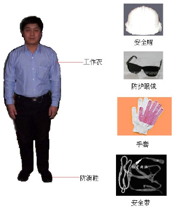 1要穿戴工作服佩戴安全帽帶防護眼鏡系安全帶